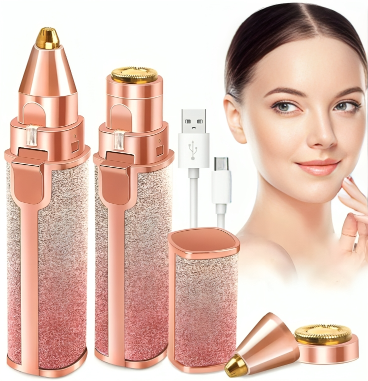 Achieve salon-smooth skin and perfectly shaped brows at home with our 2-in-1 Eyebrow Trimmer & Facial Hair Remover for Women. This versatile grooming tool is designed to gently and effectively remove unwanted hair from your eyebrows, face, lips, chin, and even nose — all without irritation or redness