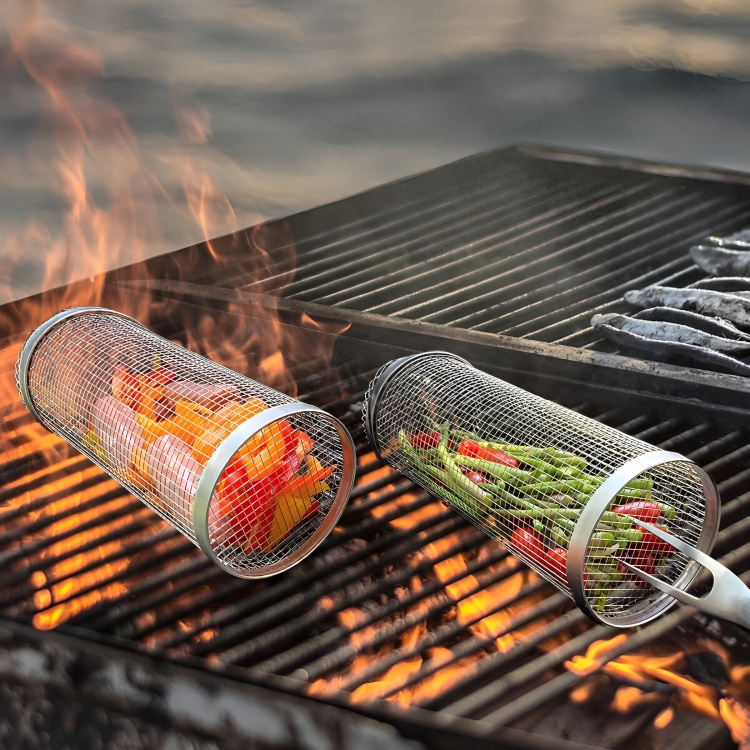 Product details of BBQ Basket Stainless Steel Rolling Grilling Basket